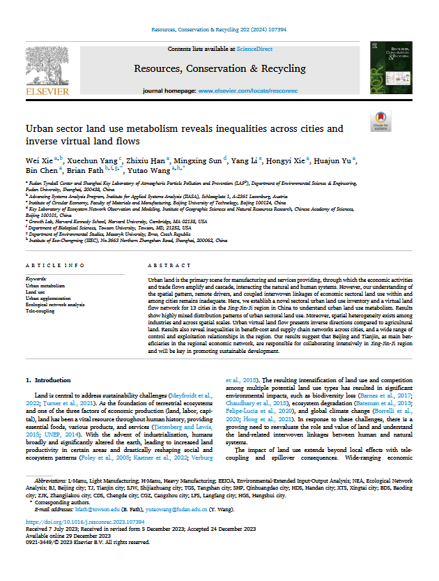 In large cities, we know about virtual land use for crops, but what about non-agricultural products driving urban economies? ✨ Through a novel full sector inventory, we unveils urban land use and its impact on economy, exposing inequalities among cities in resource input and environmental benefits.